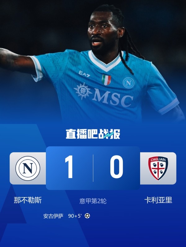 那不勒斯本轮1-0绝杀卡利亚里,安古伊萨95分钟制胜。