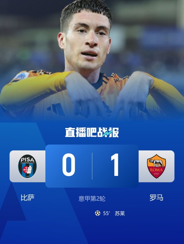 罗马本轮1-0击败比萨,苏莱打入全场唯一进球。